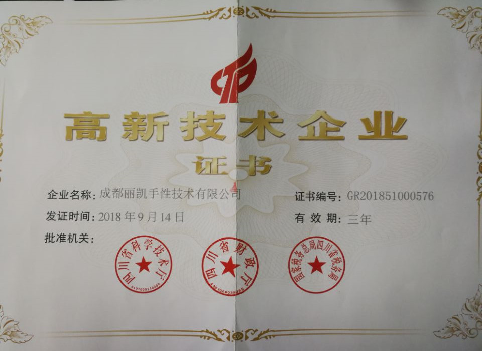 國家高新技術企業證書