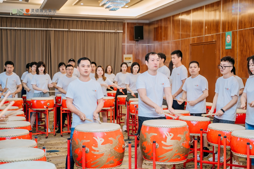 前進,無止境——靈碩展覽集團在黨的光輝路線里感受紅色精神的傳承。自力更生,艱苦奮斗的革命精神在南湖的波紋里蕩漾,化為靈碩發展的內驅力和靈碩人的向心力,靈碩的團建在這里伴隨中國鼓的敲擊聲開始。
